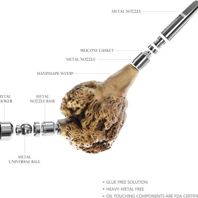 Handcrafted Natural Burl Wood Pipe– Unique Grain | Retro Style | Durable Metal Mouthpiece